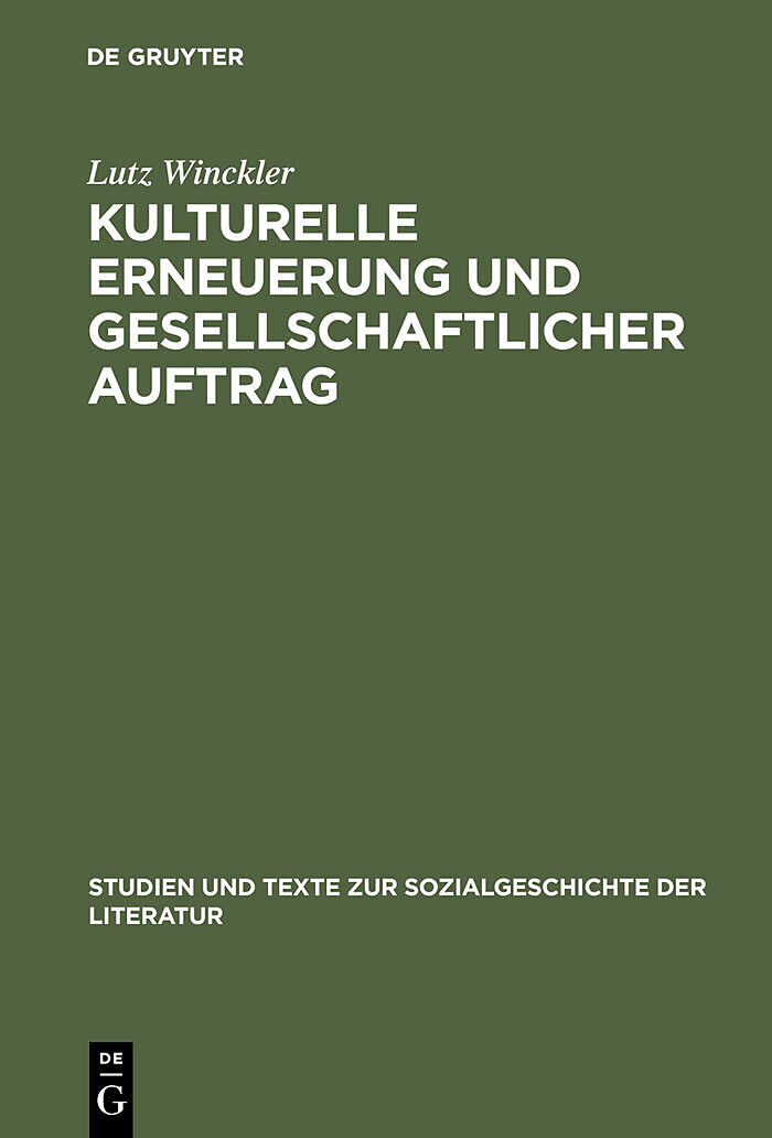 Dieser Titel, "Kulturelle Erneuerung und gesellschaftlicher Auftrag", ist eine wissenschaftliche Publikation, erschienen bei De Gruyter Brill. Ausführliche Beschreibung, Inhaltsverzeichnis und weitere Angaben finden Sie auf der Verlagswebsite: https://www.degr...