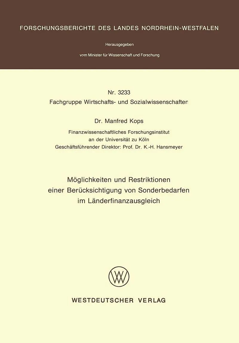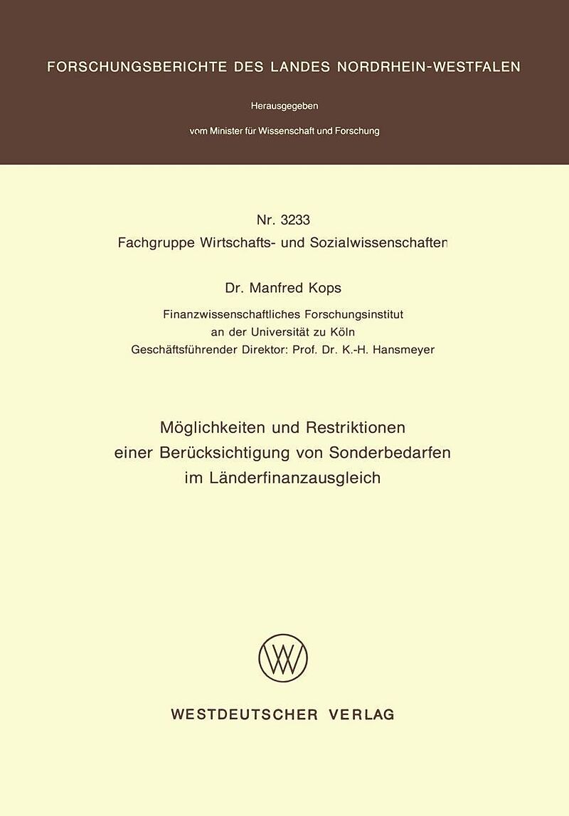 Inhalt Gliederung.- I: Problemstellung.- 1. Der politische Streit um den Länderfinanzausgleich als Ausgangspunkt der Untersuchung.- 2. Der Ausgleich von Sonderbedarfen als Kern der Auseinandersetzungen und als Untersuchungsfrage.- 3. Aufbau der Arbeit.- II: Ei...