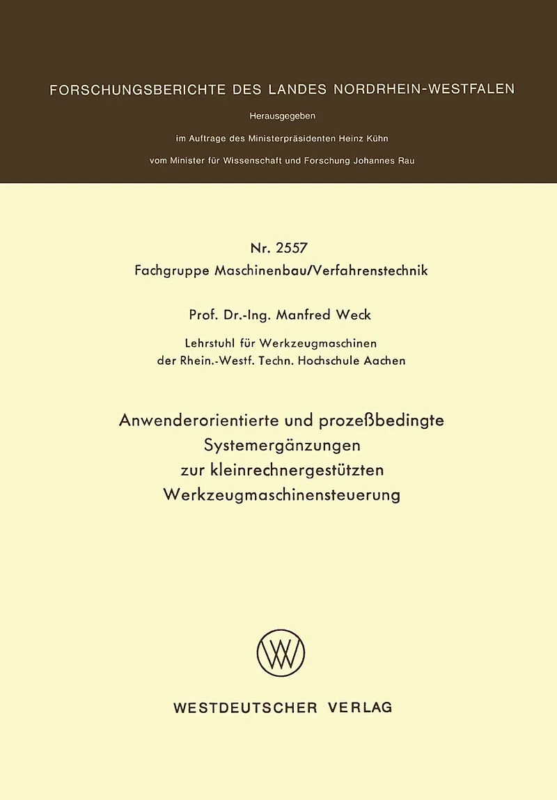 Inhalt 1. Einleitung.- 2. Erarbeitung der Struktur und Arbeitsweise ergänzender Systemteile zu einer Basis-CNC.- 2.1 Digitale Glättung.- 2.2 Rechnerkopplung zwischen einem DNC- und einem CNC Rechner.- 2.3 Die Gewindeschneideinrichtung.- 3. Softwareanpassung zw...