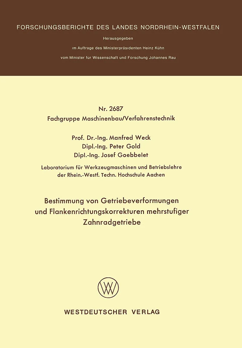 Inhalt 1. Einleitung.- 2. Stand der Technik.- 3. Digitalrechner-Programme zur Ermittlung von Getriebeverformungen.- 4. Ermittlung Verformungsbedingter Flankenrichtungskorrekturen.- 5. Berechnungs-Beispiele.- 6. Zusammenfassung.- 7. Literaturverzeichnis.- 8. Ab...