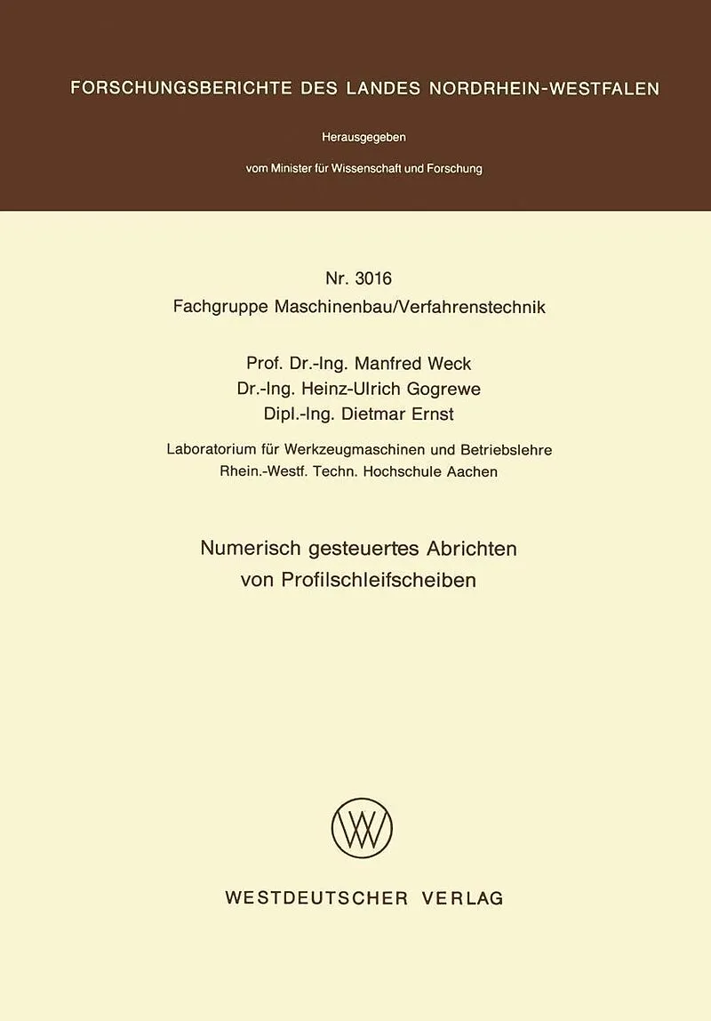 Inhalt 1. Einleitung.- 2. Konventionelles und Numerisch Gesteuertes Abrichten.- 3. Konzeption des Abrichtgerätes.- 3.1 Zu berücksichtigende Abrichtprofile.- 3.2 Abrichtmechanik.- 4. Aufbau des Numerisch Gesteuerten Abrichtsystems.- 4.1 Minirechner-Ebene.- 4.2 ...