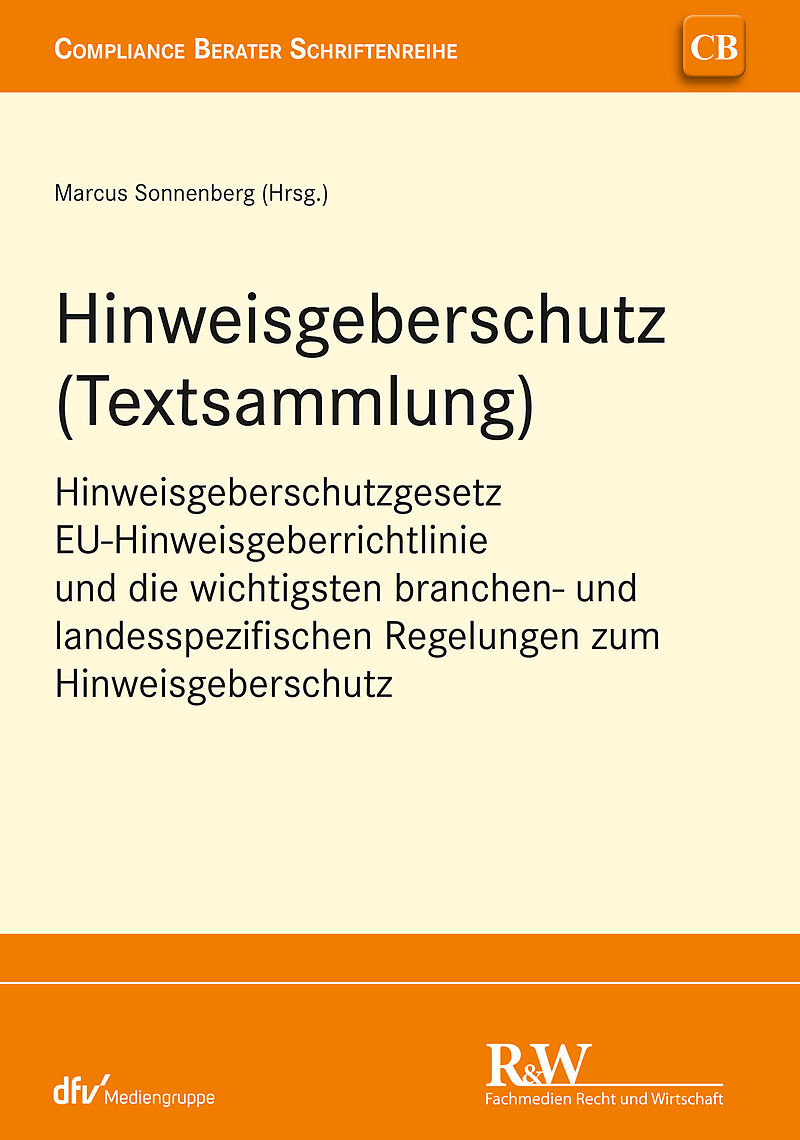 Das Werk enthält Texte zum: - Hinweisgeberschutzgesetz (HinSchG) und der - EU-Hinweisgeberrichtlinie sowie zu den wichtigsten branchen- und landesspezifischen Regelungen aus: - § 6 Abs. 5 und § 53 des Geldwäschegesetzes (GWG) - § 25a Abs. 1 Satz 6 Nr. 3 des Kr...