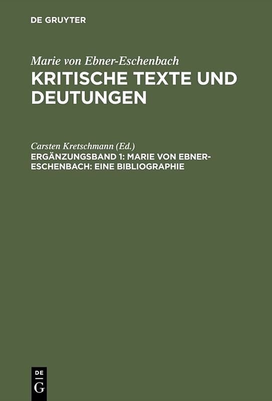 This volume supplies Germanic studies researchers with the first-ever comprehensive bibliographic tool on the life and work of Marie von Ebner-Eschenbach (1830-1916). Over 1,200 chronologically arranged main headings list both the primary and secondary litera...