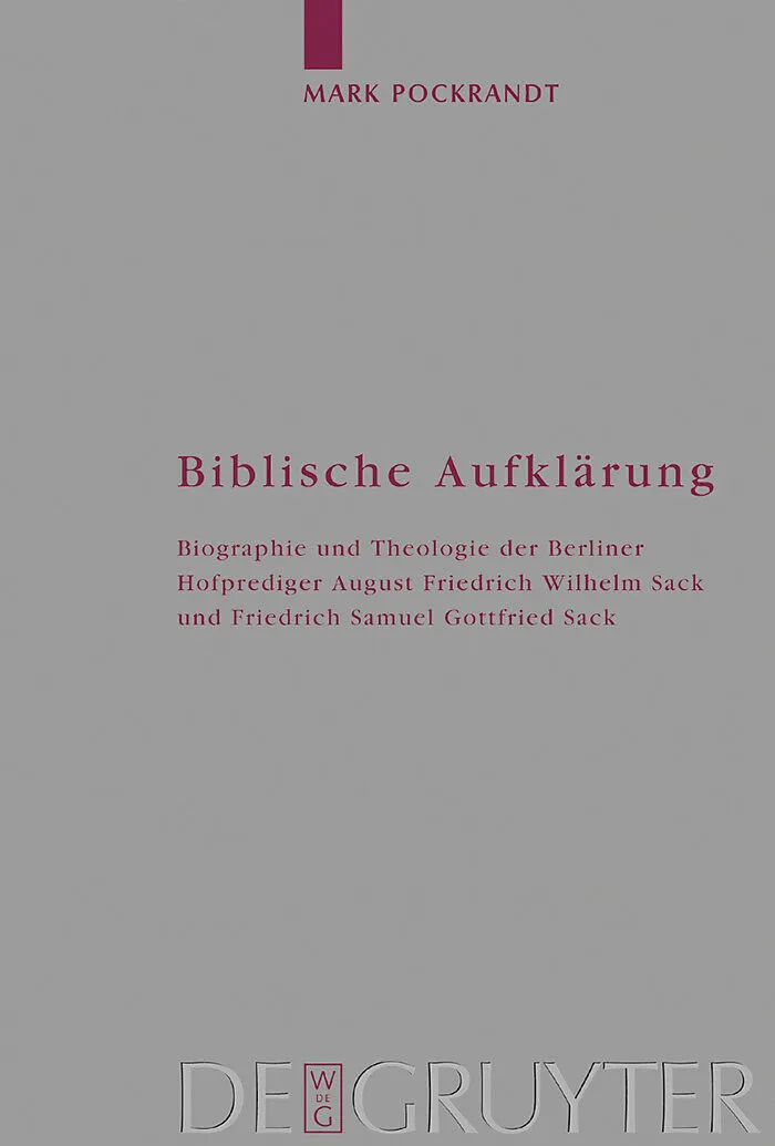 With this comprehensive study, the author presents an important contribution to research into the theological enlightenment in Germany, with particular reference to neology. He examines the biographies and theology of the two Court Preachers Sack against the ...