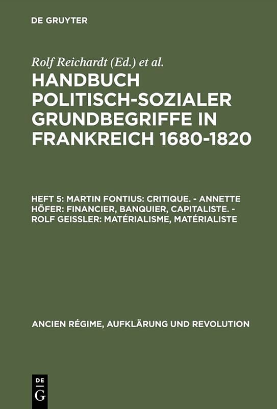 Handbuch politisch-sozialer Grundbegriffe in Frankreich 1680-1820 / Martin Fontius: Critique. Annette Höfer: Financier, Banquier, Capitaliste. Rolf Geißler: Matérialisme, Matérialiste