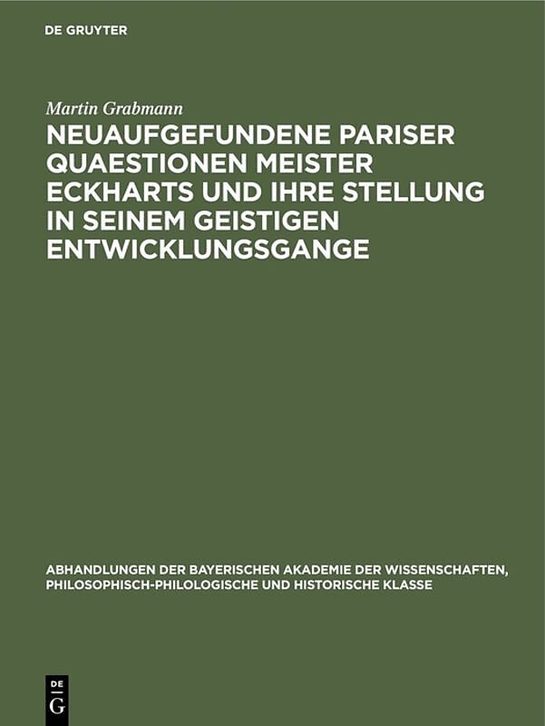 Neuaufgefundene Pariser Quaestionen Meister Eckharts und ihre Stellung in seinem geistigen Entwicklungsgange