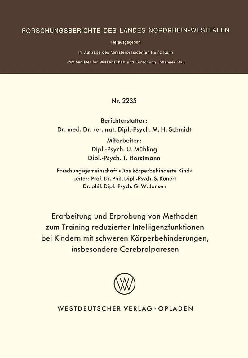 Erarbeitung und Erprobung von Methoden zum Training reduzierter Intelligenzfunktionen bei Kindern mit schweren Körperbehinderungen, insbesondere Cerebralparesen