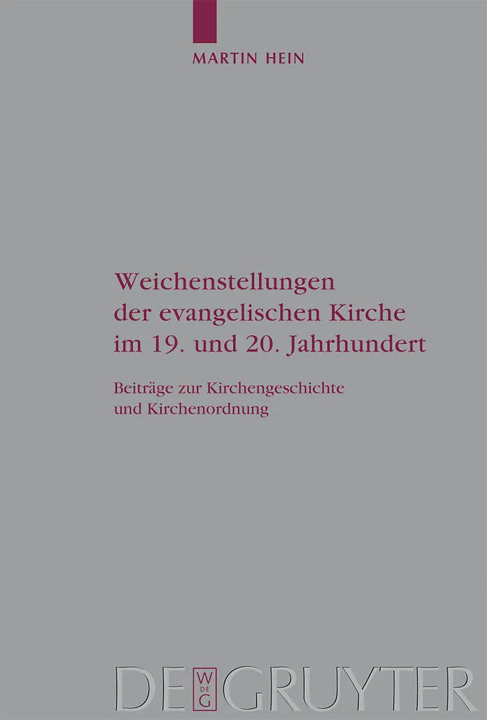 The papers collected in this volume view important moments of decision for the German Evangelical Church in the 19th and 20th centuries and illuminate their consequences for the formation of a popular church independent of the state. A main focus is on the pe...