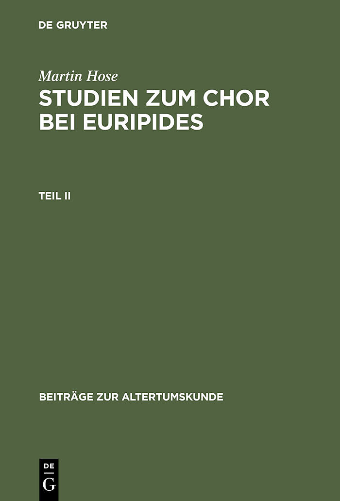 Dieser Titel, "Studien zum Chor bei Euripides. Teil 2", ist eine wissenschaftliche Publikation, erschienen bei De Gruyter Brill. Ausführliche Beschreibung, Inhaltsverzeichnis und weitere Angaben finden Sie auf der Verlagswebsite: https://www.degruyterbrill.com...