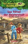Kein Mensch weit und breit. Das magische Baumhaus hat Philipp und Anne in eine Geisterstadt entführt. Um sie herum nur Steppe und hohe Berge. Sie sind tatsächlich im Wilden Westen! Da plötzlich kommt Hufgetrappel näher. Eine galoppierende Pferdeherde donnert ...