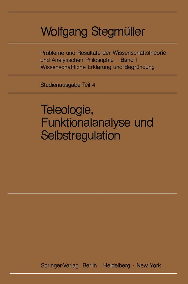 Inhalt VIII. Teleologie, Funktionalanalyse und Selbstregulation.- 1. Einleitung und Überblick.- 2. Formale Teleologie.- 3. Zielgerichtetes Handeln. Zum Problem der ontologischen und semantischen Interpretation echter materialer teleologischer Erklärungen.- 4. ...