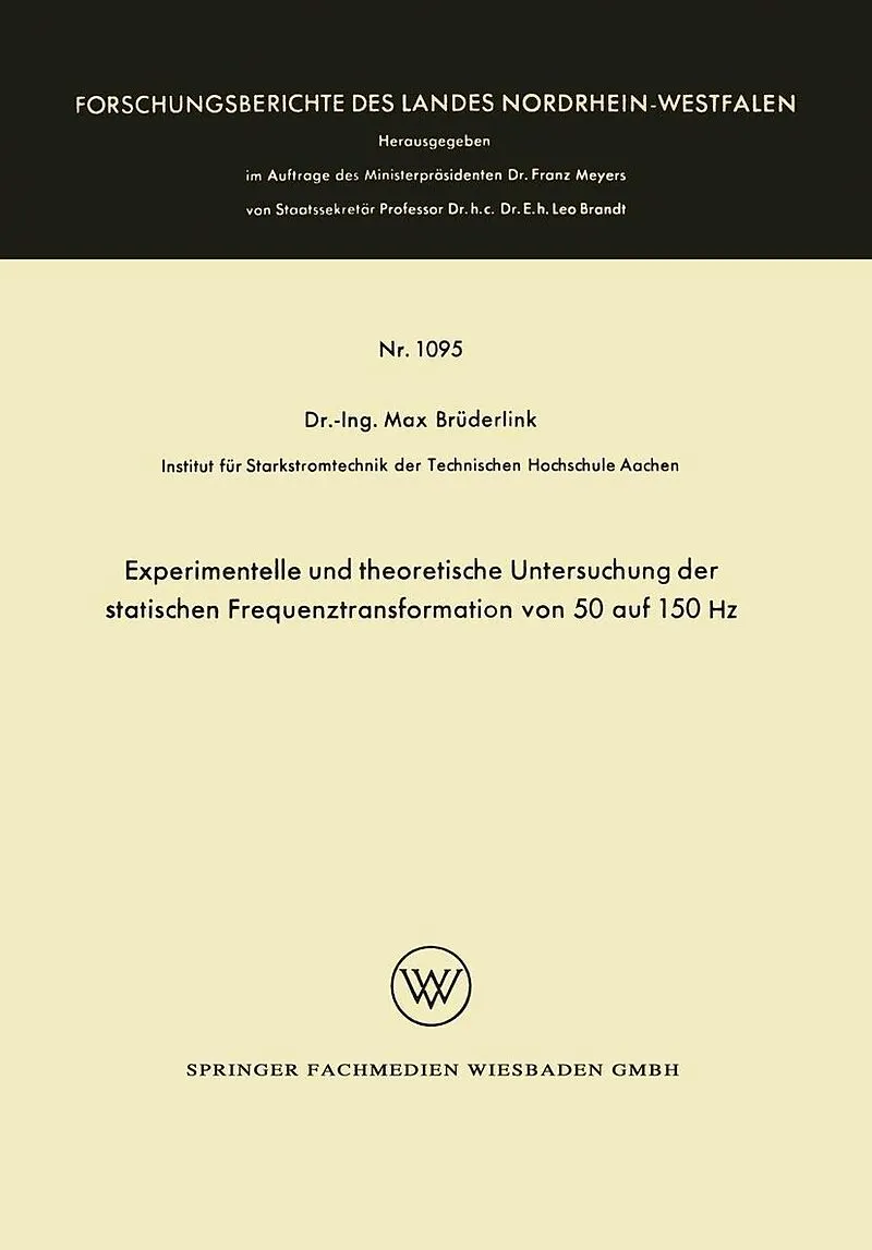 Inhalt Gliederung.- 1. Einleitung.- 2. Die Transformatoren.- 3. Leerlauf.- 4. Kurzschluß.- 5. Belastung.- 6. Vergleich der Transformatorensätze.- 7. Preisvergleich zwischen einem Triduktor und einem rotierenden Umformer von 50 Hz Drehstrom auf 150 Hz Einphasen...