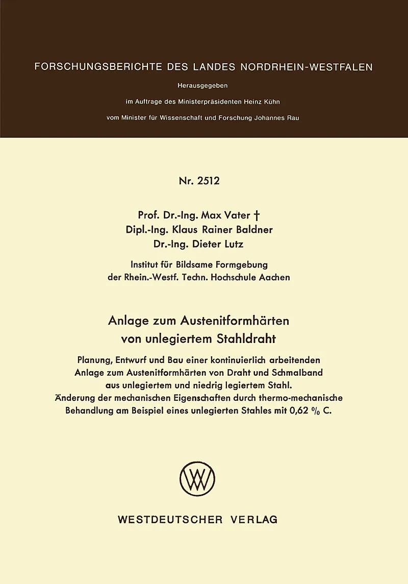 Inhalt 1 Einleitung.- 2 Erkenntnisstand.- 2.1 Patentieranlagen.- 2.2 Arten der thermomechani.schen Behandlung.- 3 Planung, Entwurf und Bau einer Anlage zum Austenitformhärten.- 3.1 Planung.- 3.2 Entwurf.- 3.3 Beschreibung der Gesamtanlage.- 4 Versuchsplan und ...
