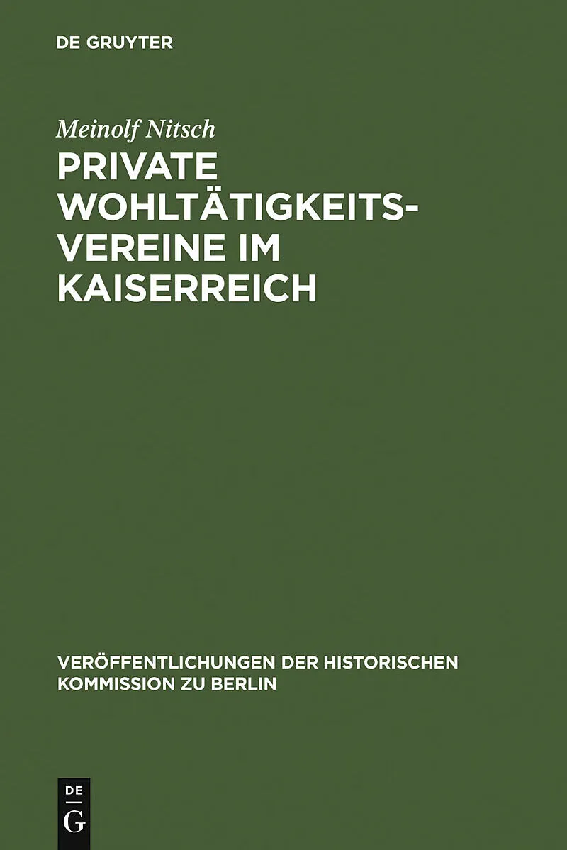 Dieser Titel, "Private Wohltätigkeitsvereine im Kaiserreich", ist eine wissenschaftliche Publikation, erschienen bei De Gruyter Brill. Ausführliche Beschreibung, Inhaltsverzeichnis und weitere Angaben finden Sie auf der Verlagswebsite: https://www.degruyterbri...
