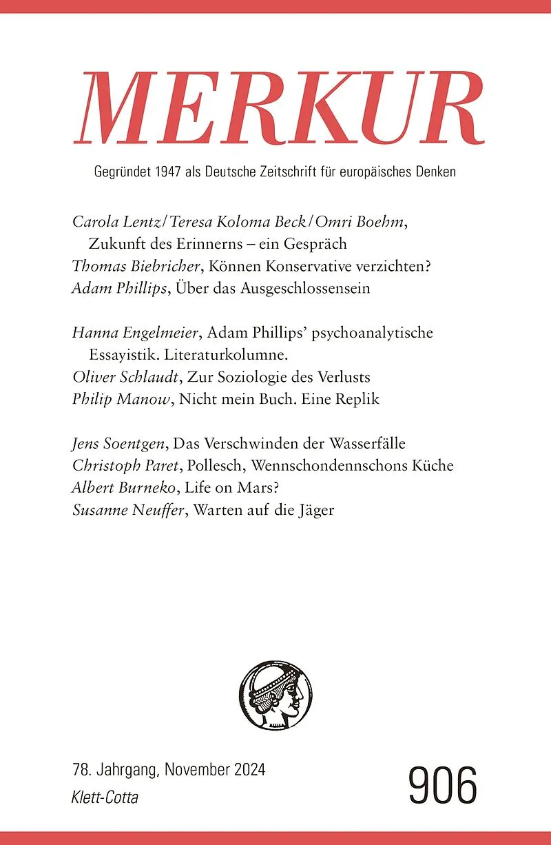 Im Gespräch über deutsche Erinnerungskultur versuchen Carola Lentz, Omri Boehm und Teresa Koloma Beck, die nationale Binnenperspektive zu überwinden. Thomas Biebricher geht der Frage nach, warum der Konservativismus der Gegenwart durchaus im Widerspruch zu sei...