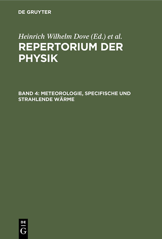 Frontmatter -- Vorwort -- Berichtigungen -- Inhaltsverzeichniss zum vierten Bande -- Elfter Abschnitt (Fortsetzung). Meteorologie -- Zwölfter Abschnitt. Wärme -- Namenregister -- Tabellen -- Tafeln
