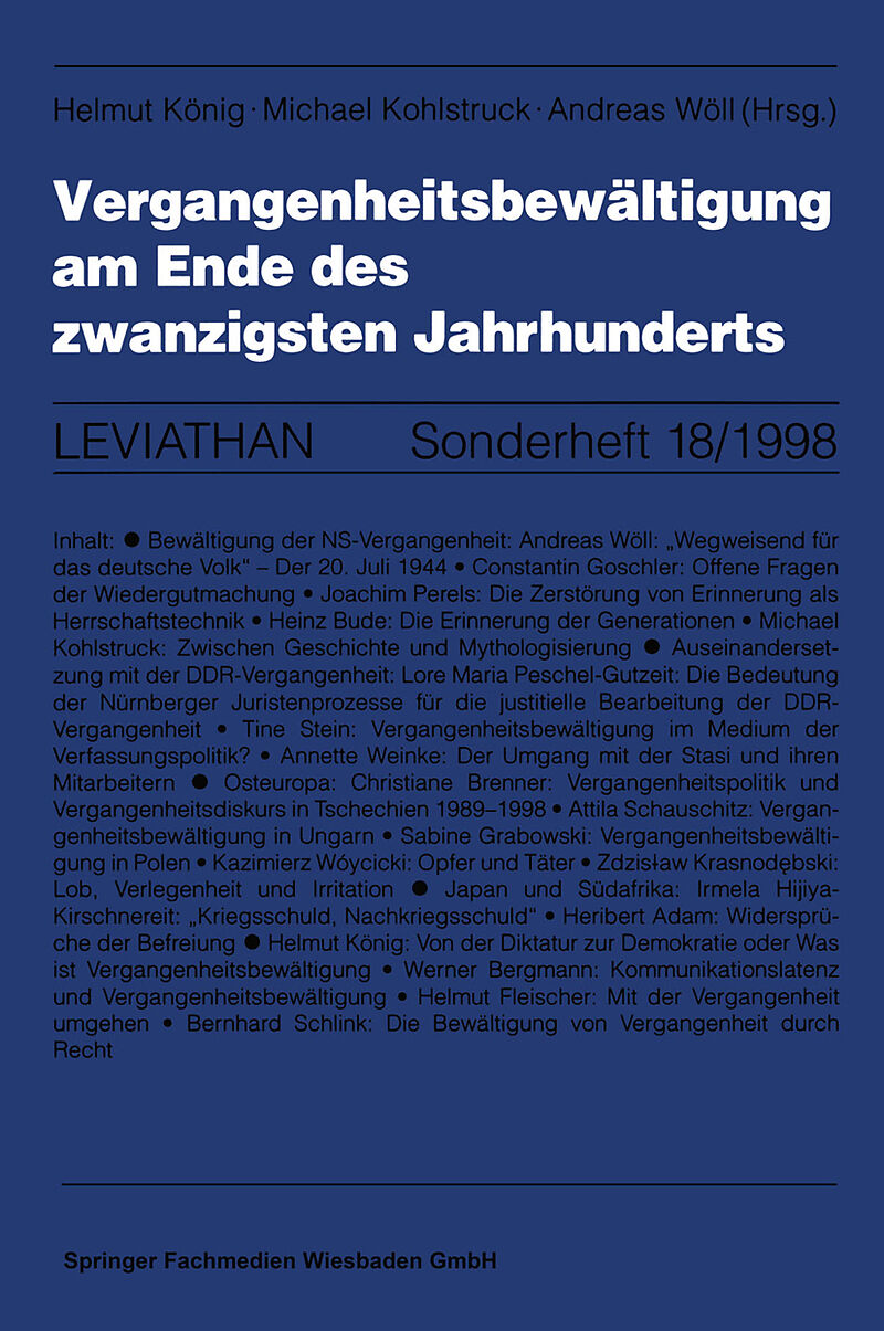 In der Bundesrepublik hat die Auseinandersetzung mit dem Nationalsozialismus eine fast 50jährige Geschichte. In dieser Zeit sind Begriff und Vorstellungswelt der "Vergangenheitsbewältigung" geprägt von sehr verschiedenen Möglichkeiten durchgespielt worden, mi...