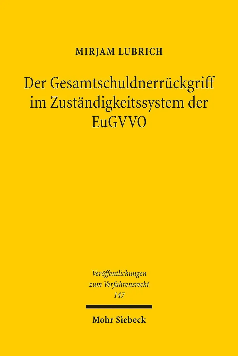 Mirjam Lubrich analyses the peculiarities of recourse claims made by jointly liable parties under the framework of the Brussels Ia Regulation, focussing on the issue of jurisdiction. Autorentext Geboren 1985; Studium der Rechtswissenschaften in Tübingen und Ma...
