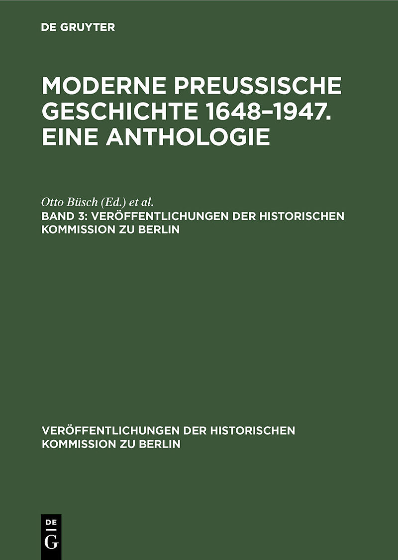 Dieser Titel, "Moderne preußische Geschichte 16481947. Eine Anthologie. Band 3", ist eine wissenschaftliche Publikation, erschienen bei De Gruyter Brill. Ausführliche Beschreibung, Inhaltsverzeichnis und weitere Angaben finden Sie auf der Verlagswebsite: https...