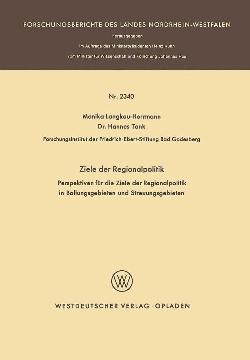 Inhalt Einführung.- Zur Problematik des gestellten Themas.- Aufgabe und Verlauf der Untersuchung.- 1. Allgemeine Einflüsse auf die Ziele.- a) Ausgangslage, Entwicklungen und Leitvorstellungen.- b) Wichtige Beziehungen in einem System von Zielen.- c) Regionalpo...