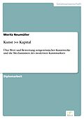 Inhaltsangabe:Einleitung: In letzter Zeit werden immer öfter Vergleiche zwischen dem Aktienmarkt und dem Markt für zeitgenössische Kunst hergestellt. Dabei scheinen die Autoren hingegen nicht zuletzt durch die Bietergefechte der millionenschweren Kunstsammler...Inhaltsangabe:Einleitung: In letzter Zeit werden immer öfter Vergleiche zwischen dem Aktienmarkt und dem Markt für zeitgenössische Kunst hergestellt. Dabei scheinen die Autoren hingegen nicht zuletzt durch die Bietergefechte der millionenschweren Kunstsammler an das rege Treiben an der Börse erinnert zu sein und seine wachsende Fungibilität hat auch den Einsatz des Kunstwerkes als Investitionsgut ermöglicht, wie vielerorts geschrieben wird. Ein durchkonzipierter Vergleich der Primär- und Sekundärmärkte für Aktien respektive Kunstwerke fehlt aber. Dieses Manko soll mit der vorliegenden Arbeit beseitigt werden. Freilich kann ein solcher Vergleich der augenscheinlich so unterschiedlichen Märkte erst nach einer genauen Strukturierung und Beschreibung des Kunstmarktes, seiner Teilnehmer und Marktmechanismen erfolgen. Im ersten Teil sollen demnach die Protagonisten des Kunstmarktes, also der Künstler, das Kunstwerk, der Käufer, die Institutionen und die sonstigen Mitspieler charakterisiert werden. Hat man die Teilnehmer des modernen Kunstmarktes einmal kennengelernt, kann man auch die Unterteilung desselben in die zwei Teilmärkte Primär- und Sekundärmarkt nachvollziehen und die grundsätzlichen Differenzen zwischen der Galeristentätigkeit und dem Versteigerungsgeschäft verstehen. Auf dieser Basis wird der Vergleich mit dem Aktienmarkt durchgeführt, wobei die Analogien und Ähnlichkeiten eher im Blickpunkt stehen sollten, als die gravierenden Differenzen zwischen diesen beiden Märkten. Der Vergleich soll sich freilich nicht auf die bloße Feststellung, das Kunstwerk habe sich durch den zunehmenden Gebrauch als Wertanlage der Aktie angenähert, beschränken. Es ist zwar gesellschaftlich nicht mehr verpönt, den Kunstmarkt als solchen zu analysieren, besondere Unterstützung für ein solches Unterfangen wird man, vor allem von den Galeristen, sicher nicht erwarten können. Das gilt insbesondere für Preise und Verkäufe der Vergangenheit, die praktisch von niemandem außer den Auktionshäusern preisgegeben werden. Deshalb konnten bei der, den theoretischen Abschnitt komplettierenden, empirischen Analyse nur Daten des Sekundärmarktes herangezogen werden, obwohl dieser sicher nur ein Segment des gesamten Marktgeschehens darstellt. Nichtsdestotrotz wird in diesem Kapitel versucht, eine Performance-Messung für Kunstwerke zeitgenössischer Künstler im Sinne von Investitionsgütern durchzuführen. Die Erstellung theoretischer Kunstportfolios ermöglicht die Verfolgung der [...]