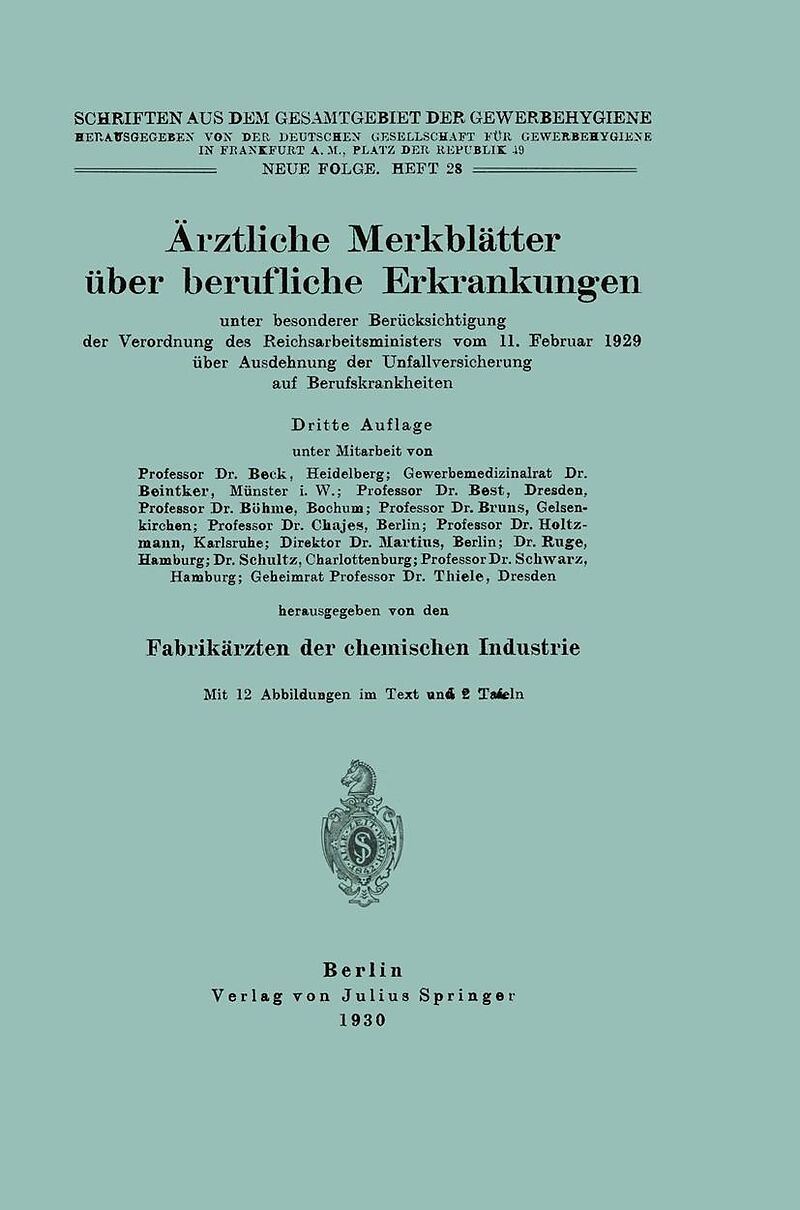 Ärztliche Merkblätter über berufliche Erkrankungen
