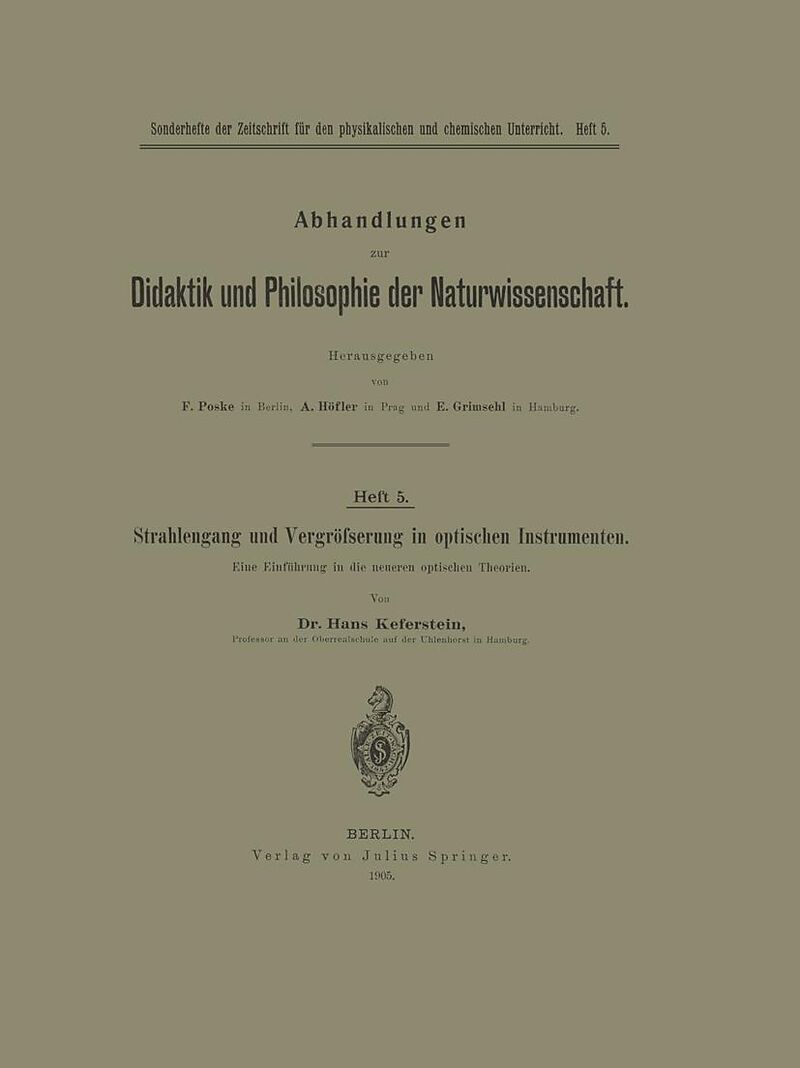 Inhalt I. Einleitung.- II. Der Einfluß von Blenden auf den Strahlengang.- 1. Objektive Demonstration des Ortes und der Größe virtueller Bilder.- 2. Apertur- und Gesichtsfeld-Blende.- 3. Blenden und Blendenbilder.- 4. Der Strahlengang in den optischen Instrumen...
