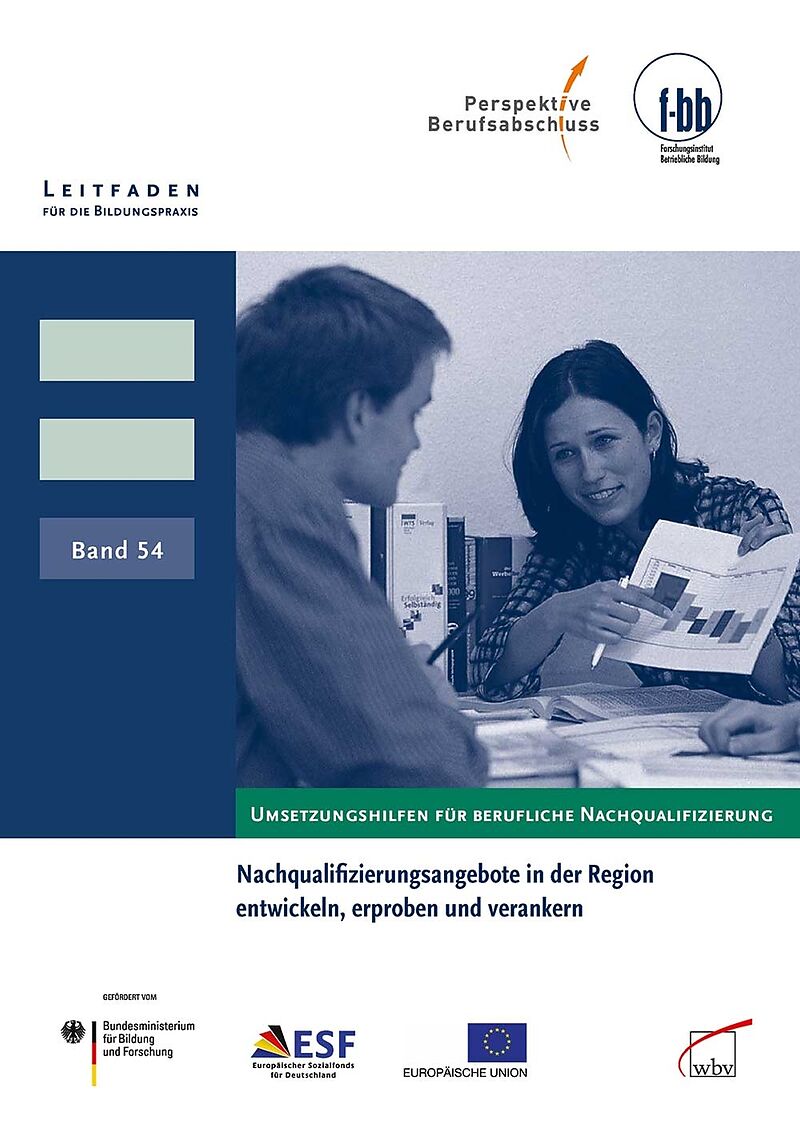 Der Leitfaden stellt die Rahmenbedingungen zum Auf- und Ausbaus eines regionalen Nachqualifizierungsangebots vor: Von der regionalen Bedarfserhebung, über den Auf- und Ausbau von passgenauen Nachqualifizierungsmöglichkeiten bis zur nachhaltigen Verankerung des...