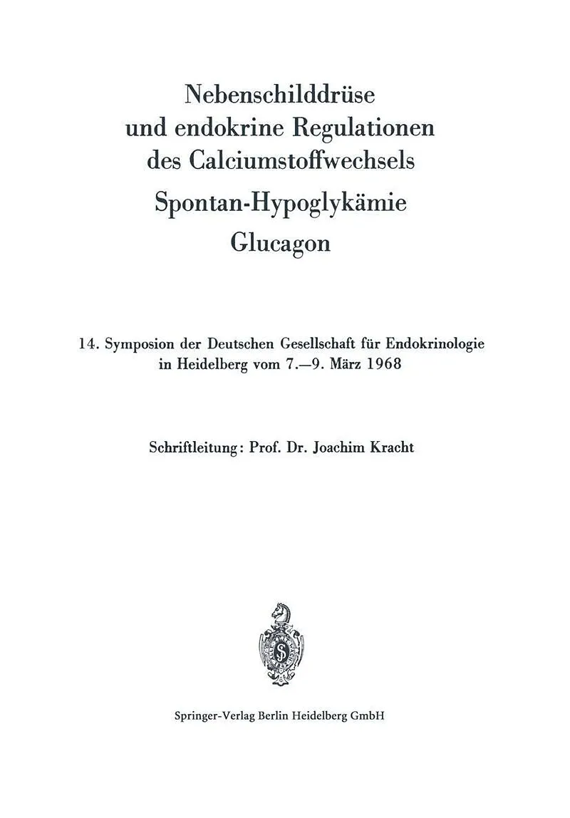 Inhalt I. Die Nebenschilddrüsen und die endokrine Regulation des Calciwmstoltwechsels.- Freie Vorträge zum Thema Nebenschilddrüse.- II. Die Spontanhypoglykämie.- III. Das Glueagon.- Freie Vorträge.