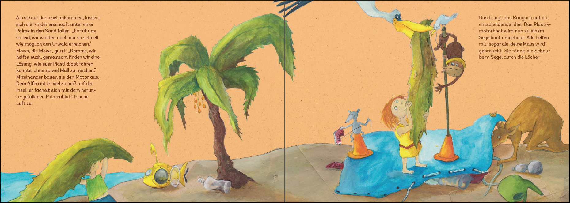 Lillian und Moritz begeben sich auf eine abenteuerliche Reise an einen geheimnisvollen Ort, von dem ihnen ihre Uroma erzählt hat. Sie bauen sich ein Boot und machen sich auf den Weg über das Meer. Doch ihr selbstgebauter Motor spuckt viele Plastikfuzerln aus. ...