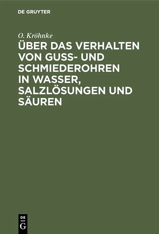 Dieser Titel, "Über das Verhalten von Guß- und Schmiederohren in Wasser, Salzlösungen und Säuren", ist eine wissenschaftliche Publikation, erschienen bei De Gruyter Brill. Ausführliche Beschreibung, Inhaltsverzeichnis und weitere Angaben finden Sie auf der Ver...