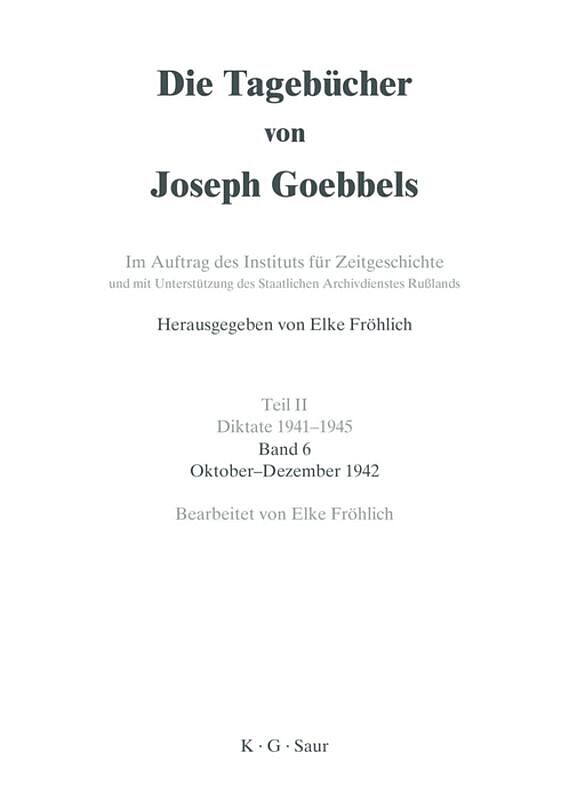 Mit den 29 Textbänden und den drei Erschließungsbänden ist die Edition sämtlicher vorhandener Goebbels-Tagebücher abgeschlossen. Sie macht dem Forscher und interessierten Laien nahezu 7.000 von Hand beschriebene Seiten und ca. 36.000 diktierte Blätter von ein...