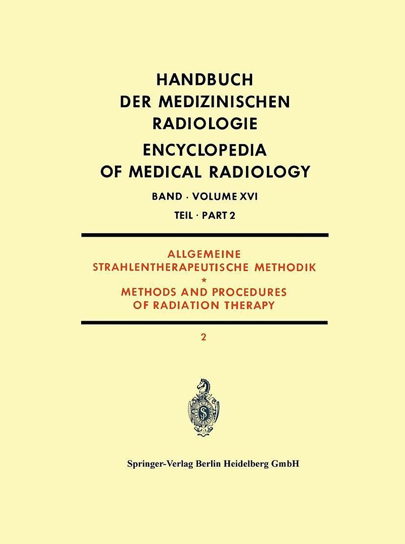 Inhalt Contents.- A. Therapie mit Corpuscularstrahlen.- 1. Therapie mit schnellen Elektronen.- 2. Neutron capture therapy.- 3. Therapy with high-energy heavy particles.- B. Bestrahlung mit radioaktiven Stoffen.- 1. Dosimetry.- 2. Kontaktbestrahlung mit radioak...