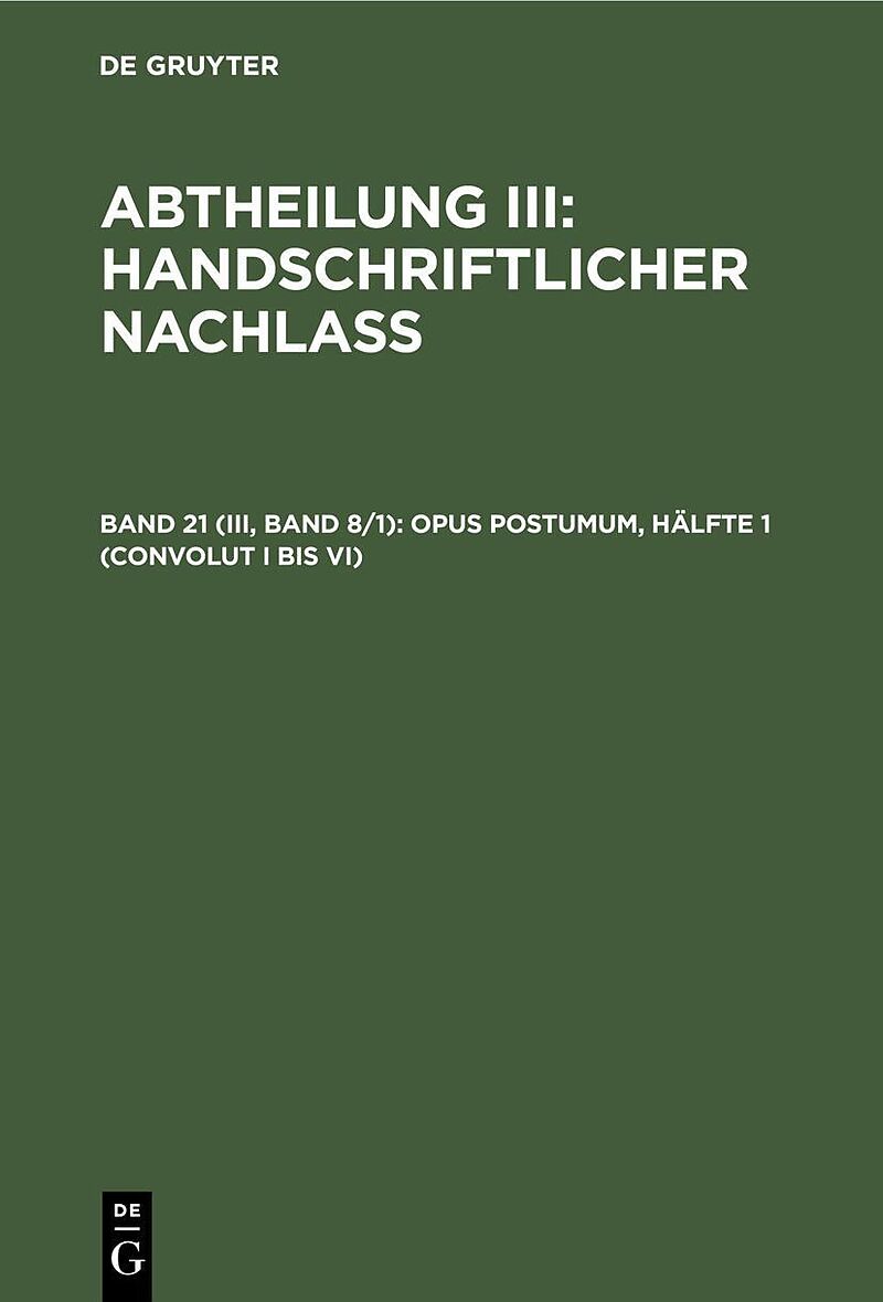 Opus postumum, Hälfte 1 (Convolut I bis VI)