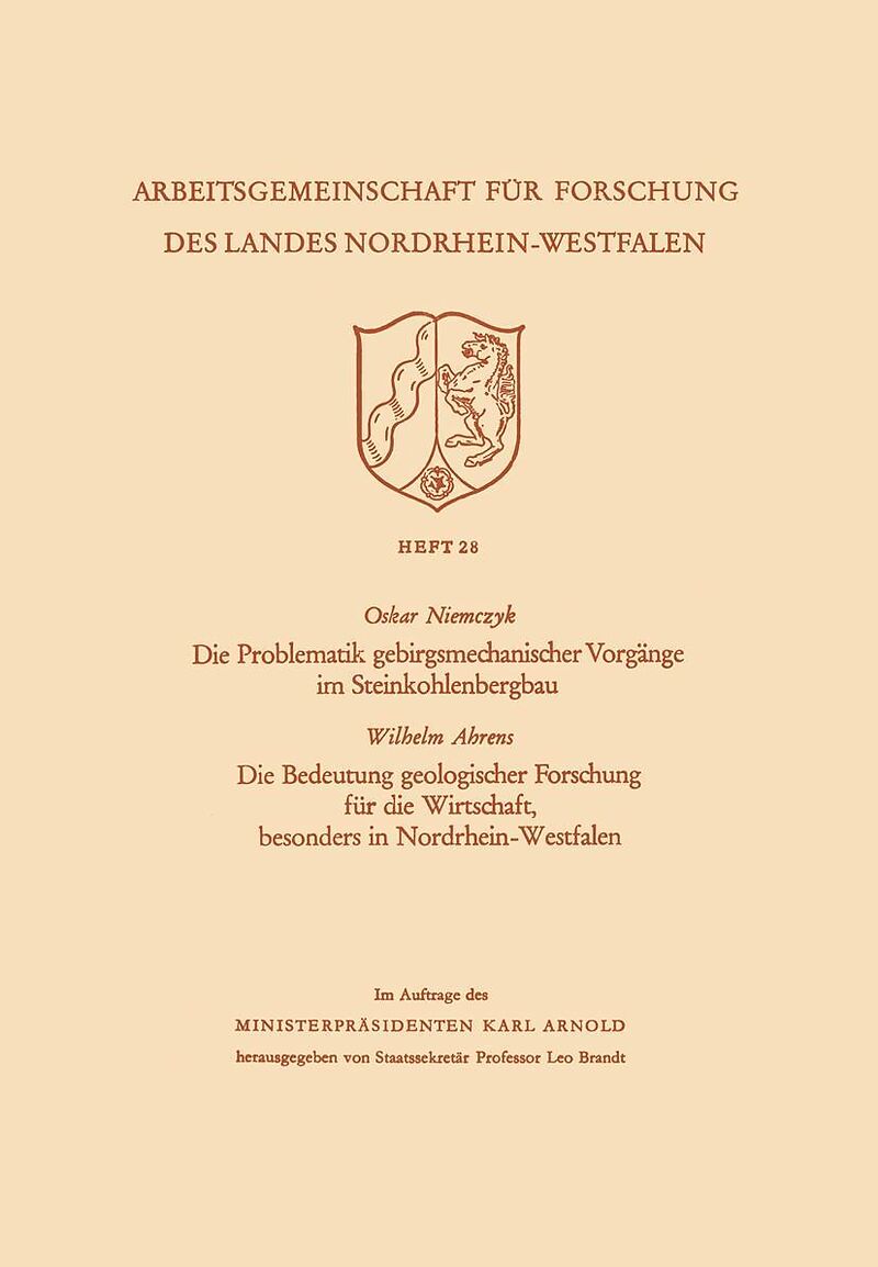 InhaltDie Problematik gebirgsmechanischer Vorgänge im Steinkohlenbergbau.- Die Bedeutung geologischer Forschung für die Wirtschaft, besonders in Nordrhein-Westfalen.