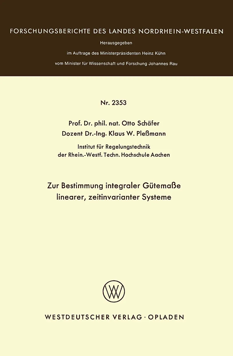 Inhalt 1. Einleitung.- 2. Systembeschreibung.- 2.1 Die allgemeine Vektor-Matrix-Differentialgleichung.- 2.2 Lineare Transformationen.- 2.3 Zusammenstellung.- 3. Integrale Gütemaße.- 3.1 Die Ljapunow-Funktion.- 3.2 Bestimmung von Gütemaßen mit Hilfe der Schwarz...