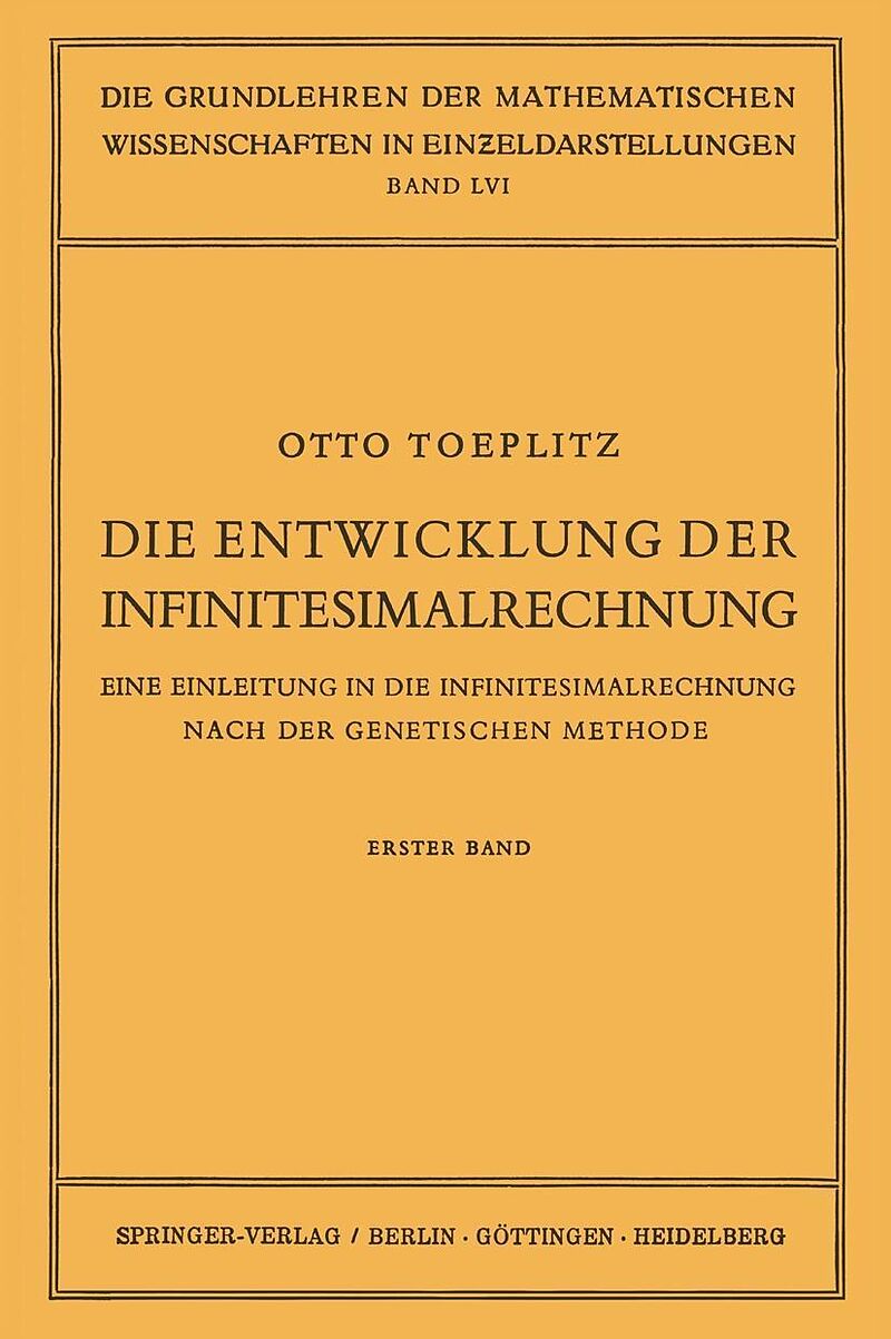 Inhalt I. Das Wesen des unendlichen Prozesses.- § 1. Die Anfänge des infinitesimalen Denkens bei den Griechen.- § 2. Die griechische Proportionenlehre.- § 3. Die Exhaustionsmethode der Griechen.- § 4. Der Zahlbegriff der Neuzeit.- § 5. Die Kreismessung des Arc...