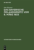 Dieser Titel, "Das bayerische Ödlandgesetz vom 6. März 1923", ist eine wissenschaftliche Publikation, erschienen bei De Gruyter Brill. Ausführliche Beschreibung, Inhaltsverzeichnis und weitere Angaben finden Sie auf der Verlagswebsite: https://www.degruyterbri...