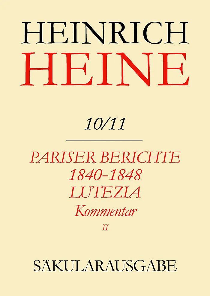 Aus seinen 1840 bis 1848 geschriebenen Pariser Presseberichten "Über Politik, Kunst und Volksleben" (Band 10 der Säkularausgabe) stellte Heine mit großem Energieaufwand in seiner Matratzengruft 18521854 die überarbeitete Buchfassung zusammen, die als "Lutezia...