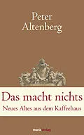 "Peter Altenberg ist ein Genie der Nichtigkeiten, ein seltsamer Idealist, der die Schönheiten der Welt wie Zigarettenstummel in den Aschenbechern der Kaffeehäuser findet." Franz KafkaPeter Altenberg zählt zu jenen Autoren, die, wie er selbst einmal sagte, das ...