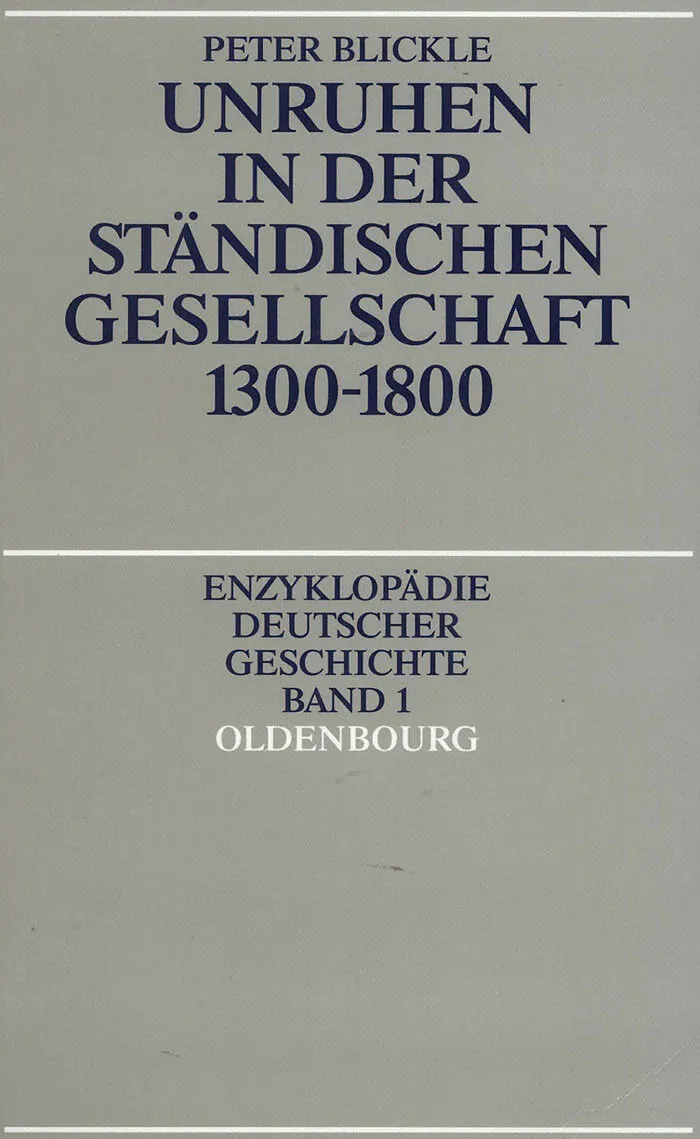 Im Rahmen der Enzyklopädie deutscher Geschichte gibt Peter Blickle eine Gesamtdarstellung des Gegenstandes "Soziale Konflikte" für das späte Mittelalter und die frühe Neuzeit. Unter "Unruhen" versteht er die Protesthandlungen der Untertanen zur Behauptung und ...