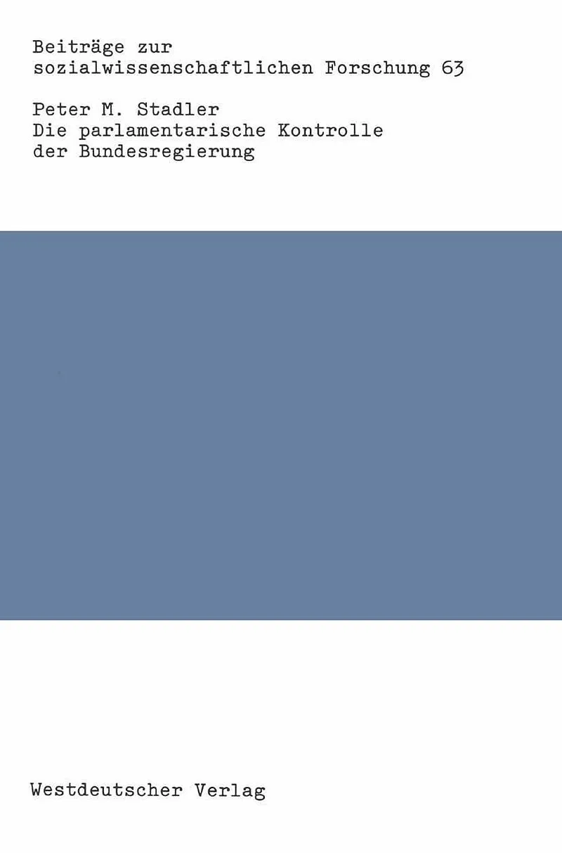 Inhalt Erster Teil Der theoretische Bezugsrahmen.- I. Parlamentarische Kontrolle Versuch einer Begriffsanalyse.- II. Der Handlungsrahmen der parlamentarischen Kontrolle.- III. Die Grenze der Kontrolle: eine Informationsfrage?.- Zweiter Teil Die politische Prax...