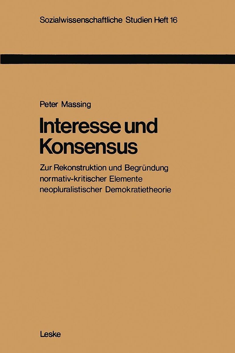 Inhalt 1. Einleitung.- 1.1 Rechtfertigung der Auswahl des Untersuchungsgegenstandes.- 2. Zur anthropologischen Fundierung der demokratischen Pluralismustheorie Das Interesse als anthropologische Grundkategorie .- 2.1 Der Begriff des Interesses in den Sozialwis...
