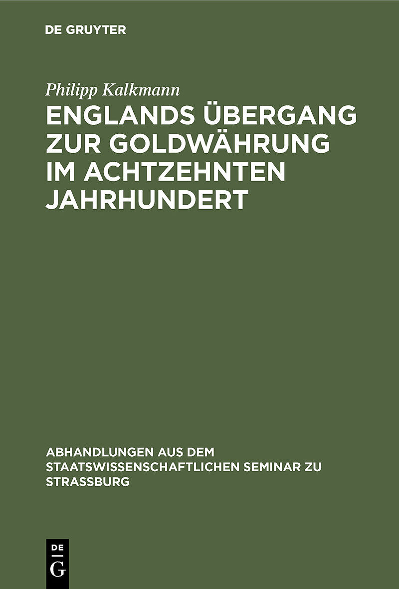 Frontmatter -- INHALT -- EINLEITUNG : ANSICHTEN ÜBER DIE ENTSTEHUNG DER ENGLISCHEN GOLDWÄHRUNG -- I. ABSCHNITT: DAS ENGLISCHE WÄHRUNGSSYSTEM AM AUSGANG DES SIEBZEHNTEN JAHRHUNDERTS UND SEINE KONSEQUENZEN -- II. ABSCHNITT: DER KAMPF FÜR DIE SILBERWÄHRUNG. -- II...