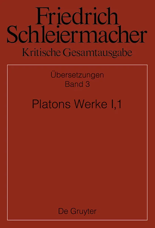 Schleiermacher's translation was initiated by F. Schlegel as a joint project, but it was worked out by Schleiermacher alone. The critical edition presents the texts of the first and second edition (with general introduction and introductions to the dialogues,...
