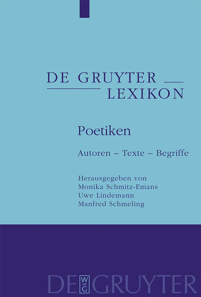 The encyclopaedia contains more than 400 articles on poetics and poetological texts from all epochs of Western literature. Particular emphasis is placed on poetological reflection in the modern age, especially on poetics by authors themselves and on literatur...