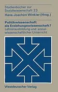 Inhalt Die Politikwissenschaft im allgemeinen Teil der Lehrerausbildung. Entwicklung und Tendenzen.- Politikwissenschaft in der allgemeinen Lehrerausbildung. Ein Defizit und seine Uberwindung.- Die Stellung der Politikwissenschaft im grundwissenschaftlichen Le...