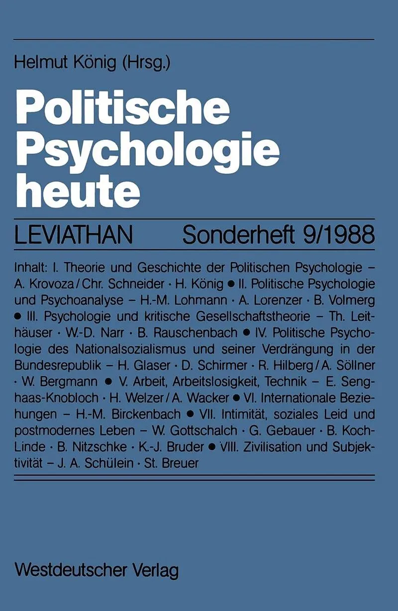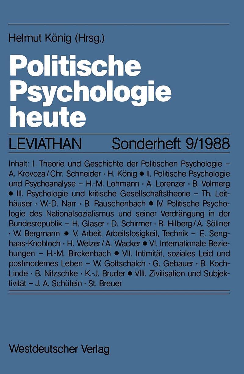 Inhalt I. Theorie und Geschichte der Politischen Psychologie.- Politische Psychologie in der Bundesrepublik: Positionen und methodische Probleme.- Wider die Politische Psychologie als Befragungswissenschaft. Kritischer Literaturbericht.- II. Politische Psychol...