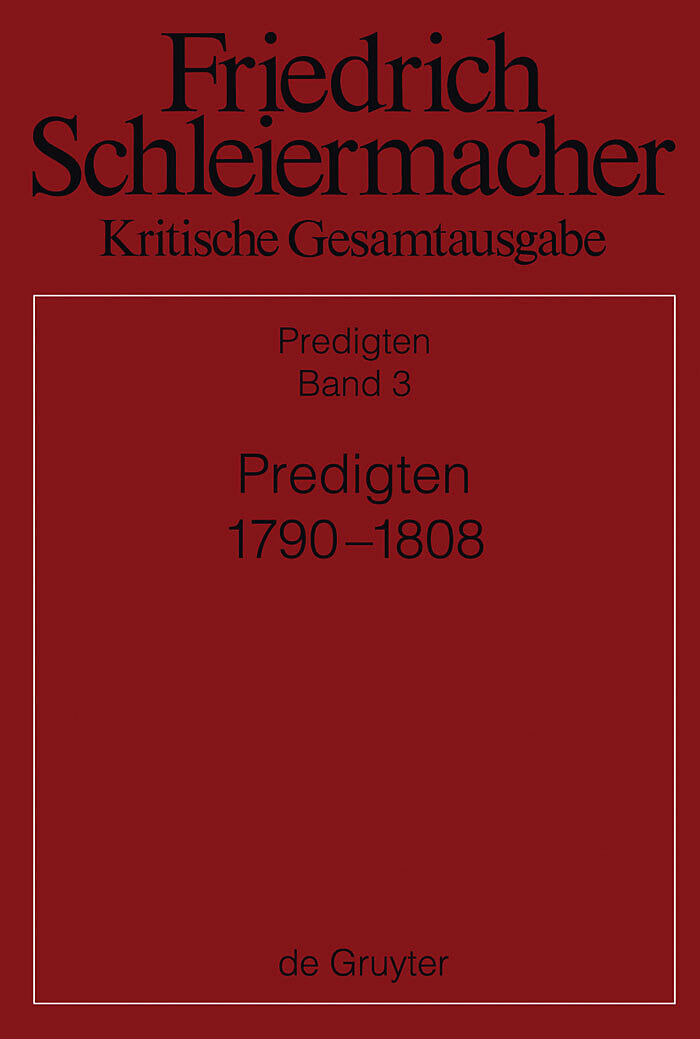 Friedrich Schleiermacher (17681834) was extraordinarily effective when he preached from the pulpit. This volume reproduces the manuscripts of his sermons, beginning with his examination sermon in 1790 and extending to his assumption of the position of reforme...