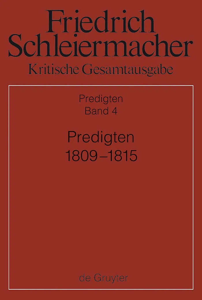 Friedrich Daniel Ernst Schleiermacher (17681834) had a remarkable ability to inspire his contemporaries from the pulpit. This volume is an edition of 107 sermons delivered on 100 occasions in the years 18091815. 74 of them are published for the first time and...